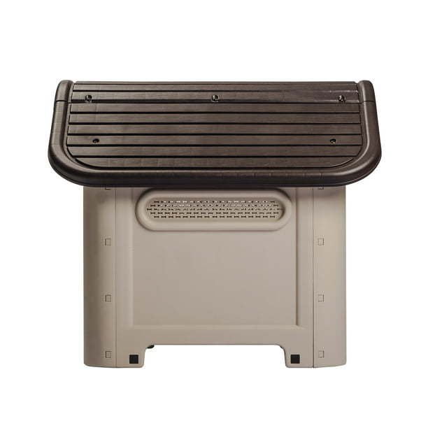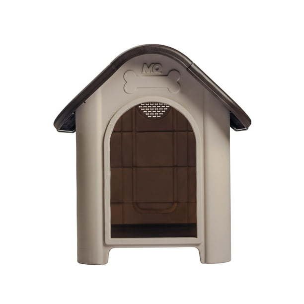 Durable polypropylene resin constructionMoisture, rust, stain, and scratch resistantUnique removable floor for easy cleaningAvailable in Espresso/Beige, Turquoise/Beige, and Magenta/BeigeIncludes one (1) food bowlWeight capacity: 55 lbsDoor entrance dimensions: 16. 1"H x 10. 2"WOverall dog house dimensions: 25. 9"H x 23. 6"W x 29. 3"DAssembly required