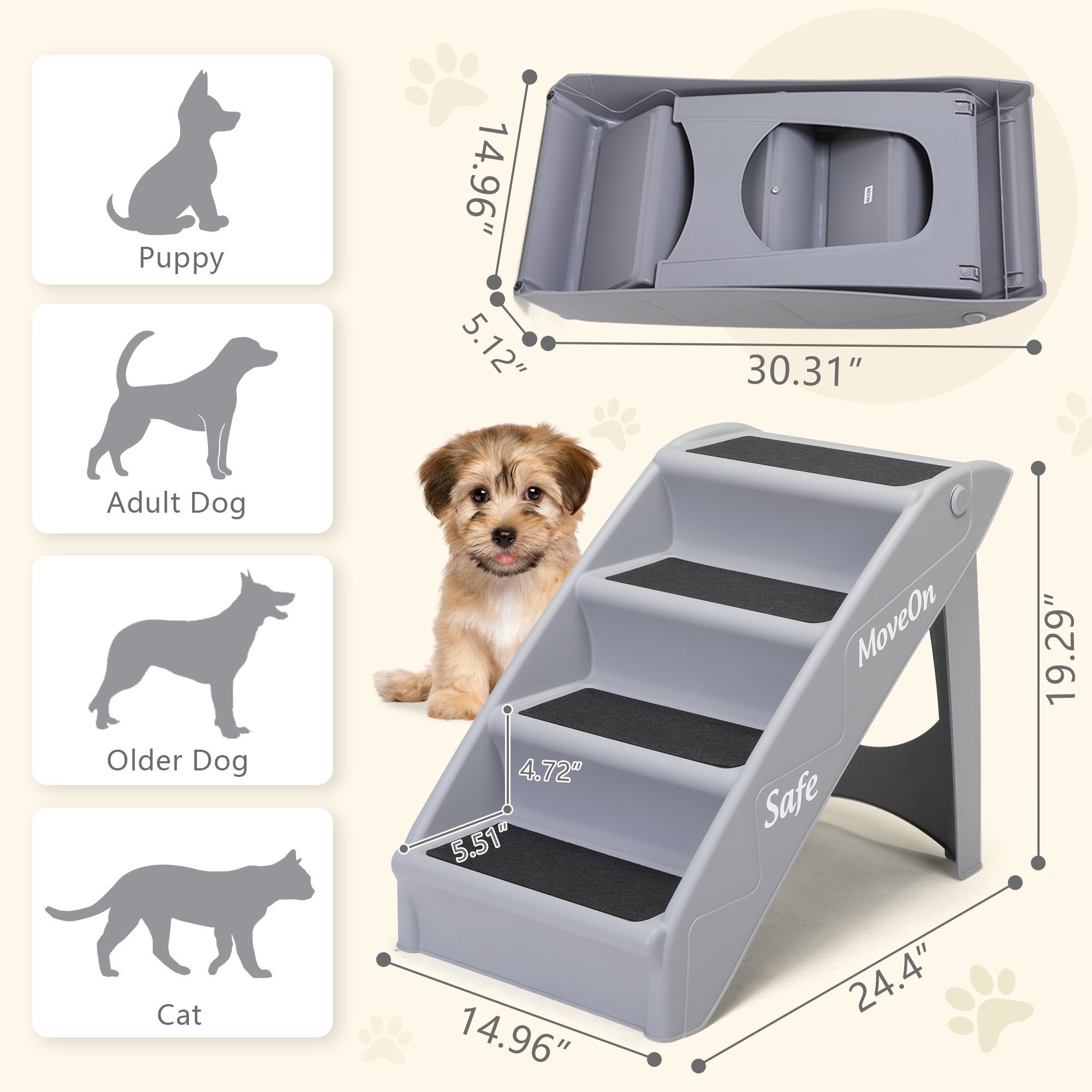 Home > Foldable Pet Ladder, Dog Stairs with 4 Nonslip Steps, Dog Cat Ramp for High Bed Chair Car Sofa, Modern Gray
