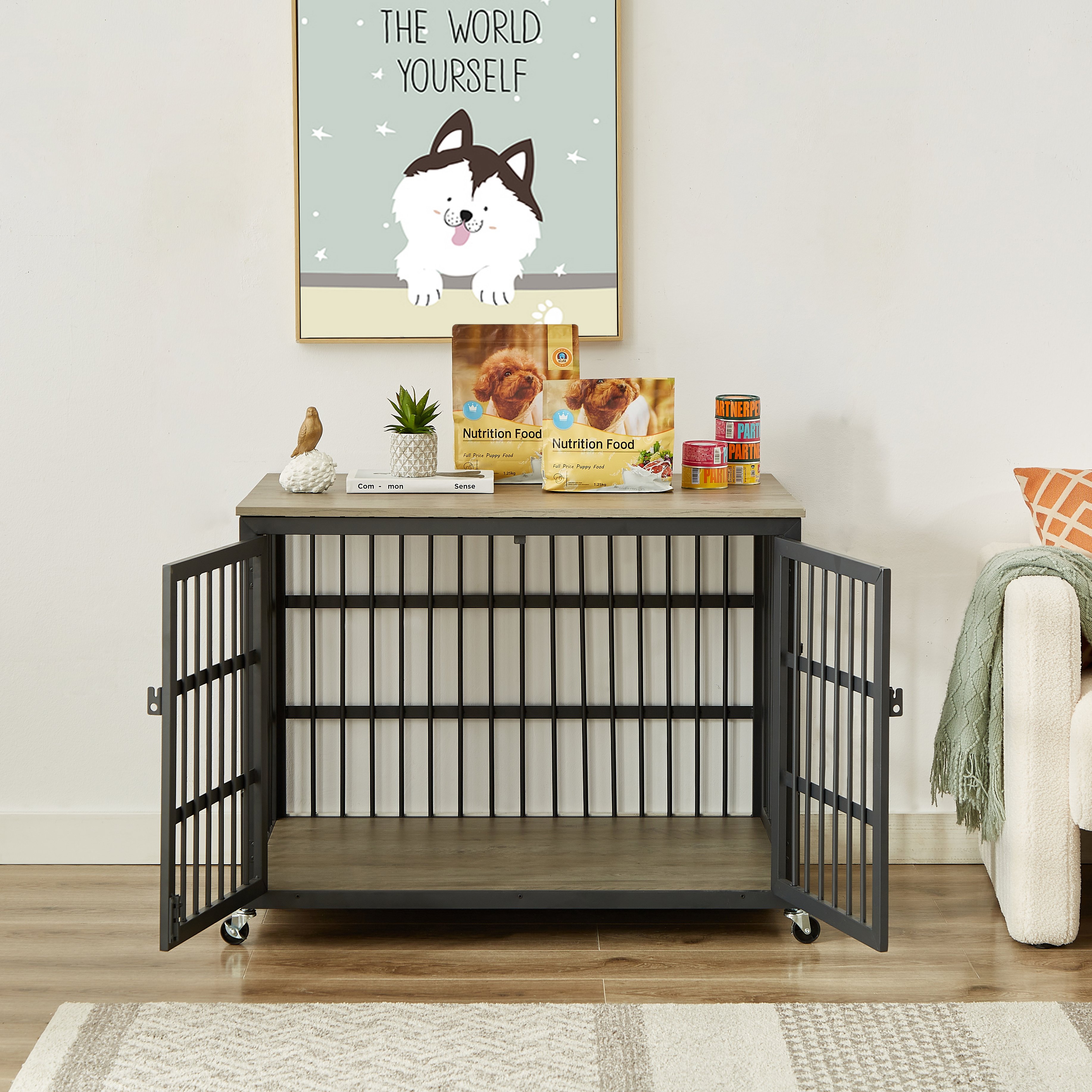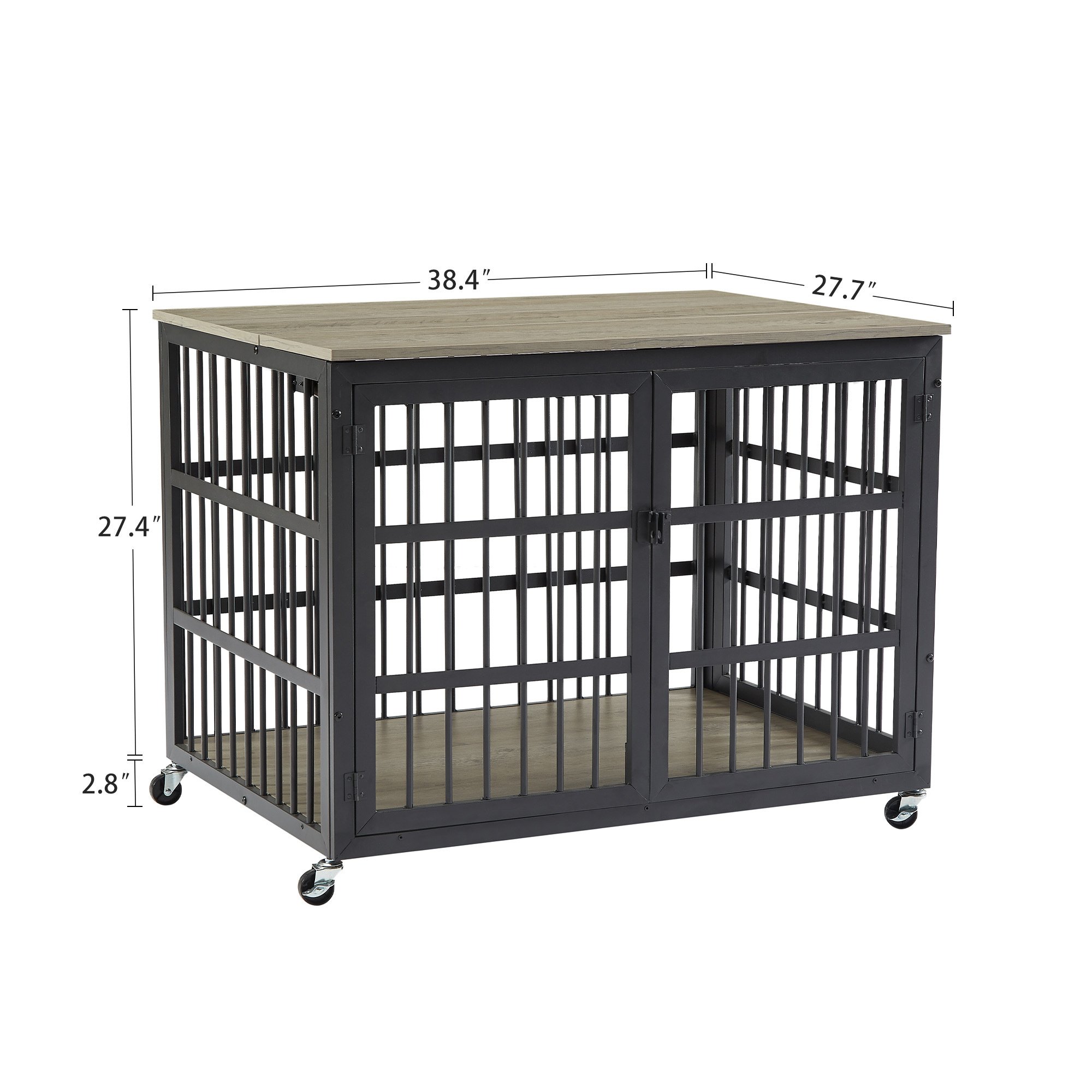 Home > Furniture style dog crate wrought iron frame door with side openings, Grey, 38.4''W x 27.7''D x 30.2''H.