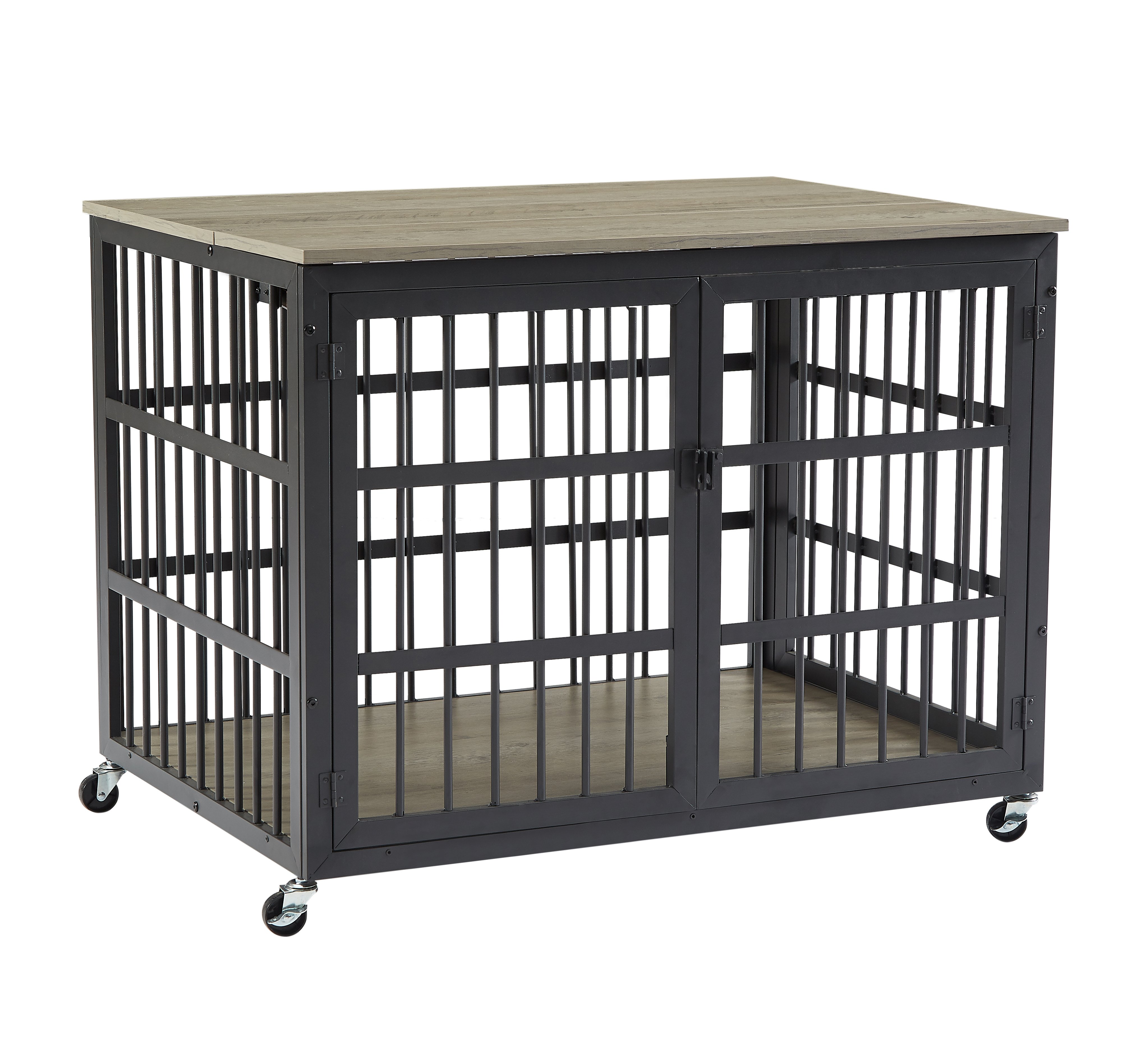 Furniture style dog crate wrought iron frame door with side openings, Grey, 38.4''W x 27.7''D x 30.2''H.