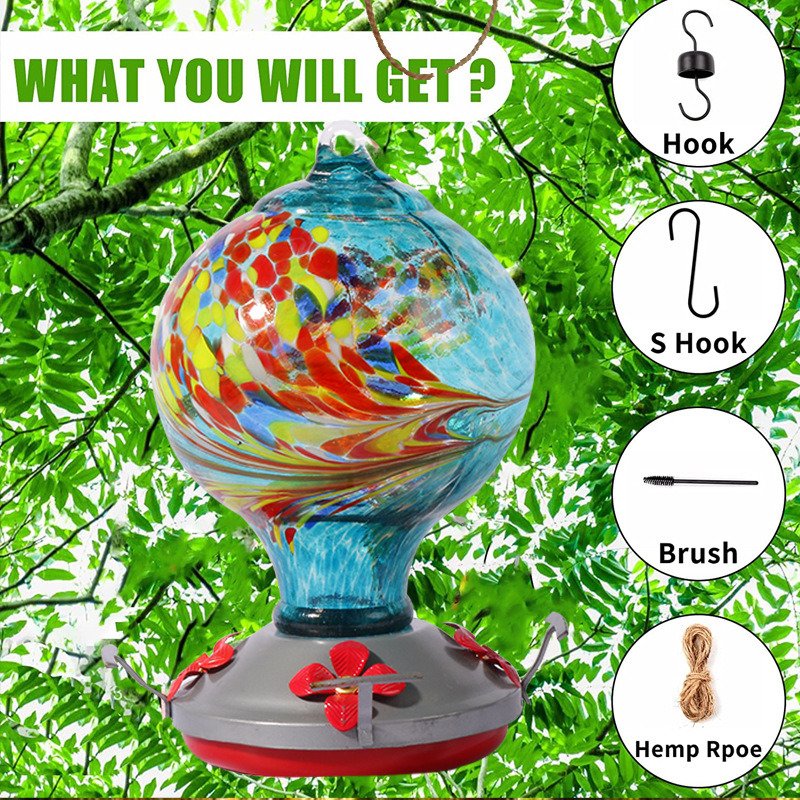 THE ARTWORK THAT HUMMINGBIRDS DART INTO - our hummingbird feeder comes in the distinctive flower bud shape with spiral grooves; which radiates the charm of curves and adds a great elegance to your yard. Mixing the natural beauty and modern arts; the bright colors flare on the crystal glass body will be equally attractive for human and hummingbirds to help you spend more time watching the birds rather than looking for them.