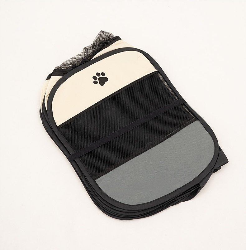 CONVENIENT:This dog playpen also features a mesh zippered entrance along the side ,zippered door provides easy in/out access for your pet. Close the door to keep your pet safely inside. you can fasten the door open with the attached Velcro. with the top zipped off you can reach in and handle the pet.soft pet playpen also features a handle bar for dragging purposes, lightweight easy carry .The pet playpen keeps your pets safely with you while at the park, beach, and inside or outside your home.