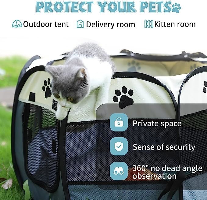 EASY AND FUN: Enclosure pup tent, the spacious interior gives your pet room to play or sleep. Breathable material make pet so comfortable , you can put a mat/blanket in the playpen, Keep your pet comfortable. our playpen available in multiple sizes and colors.