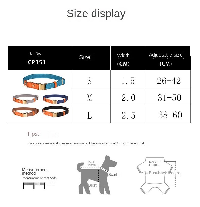 [Premium Material]Made of premium tough Leather fabric; add soft and comfortable padded inner; this material is durable; fast dries; flexible and soft; which could absorb the shock when wearing or pulling and don't harm your pet's skin [Durable Metal Buckle]Dog collar with durable metal buckle that is easy to put on and take off; thick welded D-ring provides safe attachment point for your leash. The small D-ring is specifically designed for the purpose of attaching dog charms; tags; pendants or accessories [Design]Our dog collar with leather style grain and rich attractive colors to create the perfect combination of durability and design aesthetics. SUFEI leather dog collar is a perfect combination of style; high quality and comfort. These leather collars for all breeds are comfortable; lightweight; pliable and elegant [Classic Color]This classic colors will make your dog look more fashion and stylish; perfect for our daily activities with our pets out; such as walking; running; training or hiking