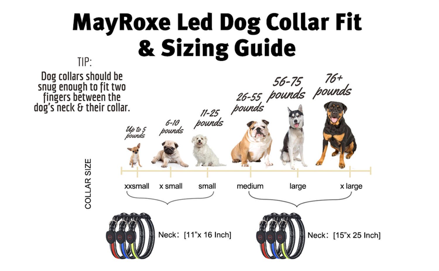 [Triple Safety] The MayRoxe led dog collar is made by nylon material which is very safe for your dog's skin; the reflective strips of the light up dog collars design on both sides can protect dogs even the light of led dog collar rechargeable is off; and the light up dog collars help vehicles see your dog well.