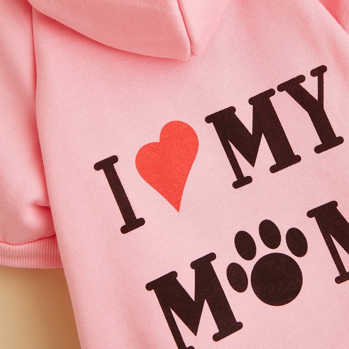Pet Hoodie For Small & Medium Dogs; I Love My Mom Dog Hoodie Cat Shirts; Cute Pet Apparel