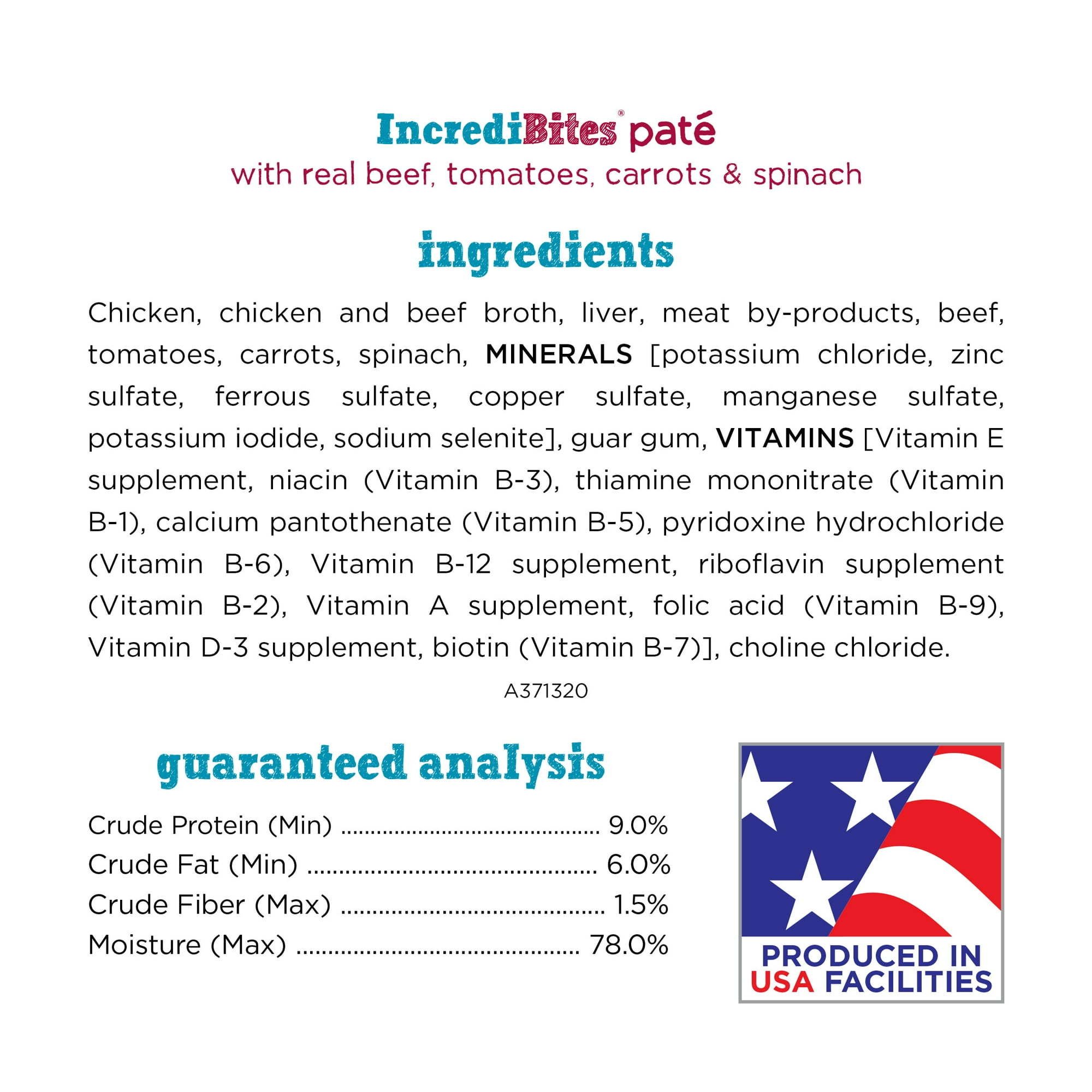 12-count variety pack with three exciting Beneful Incredibites Pate wet dog food flavors made just for small dogs with real beef, chicken or salmon and real tomatoes, carrots and spinach you can see