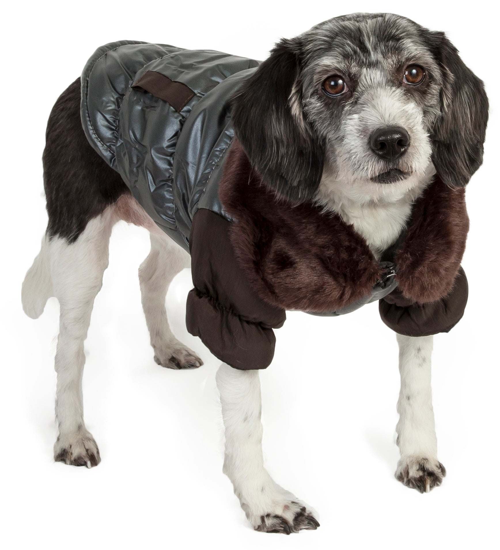 The Pet Life 'Ultra Fur' Collared Metallic Dog Jacket is Composed of High-Grade Sponge Polyester Outer-Shell and Comfortable Fleece Inner Lining. This Dog Coat contains Thinsulate Thermal Heat Retention Technology specially inserted between the fabrics keeping your Pet Warmer during those Colder Weather Climate conditions. The Faux Fur collar contrasts this Pet Jacket nicely. The Belly Velcro's into place easily creating easy On and Off access. Available in Multiple Sizes.