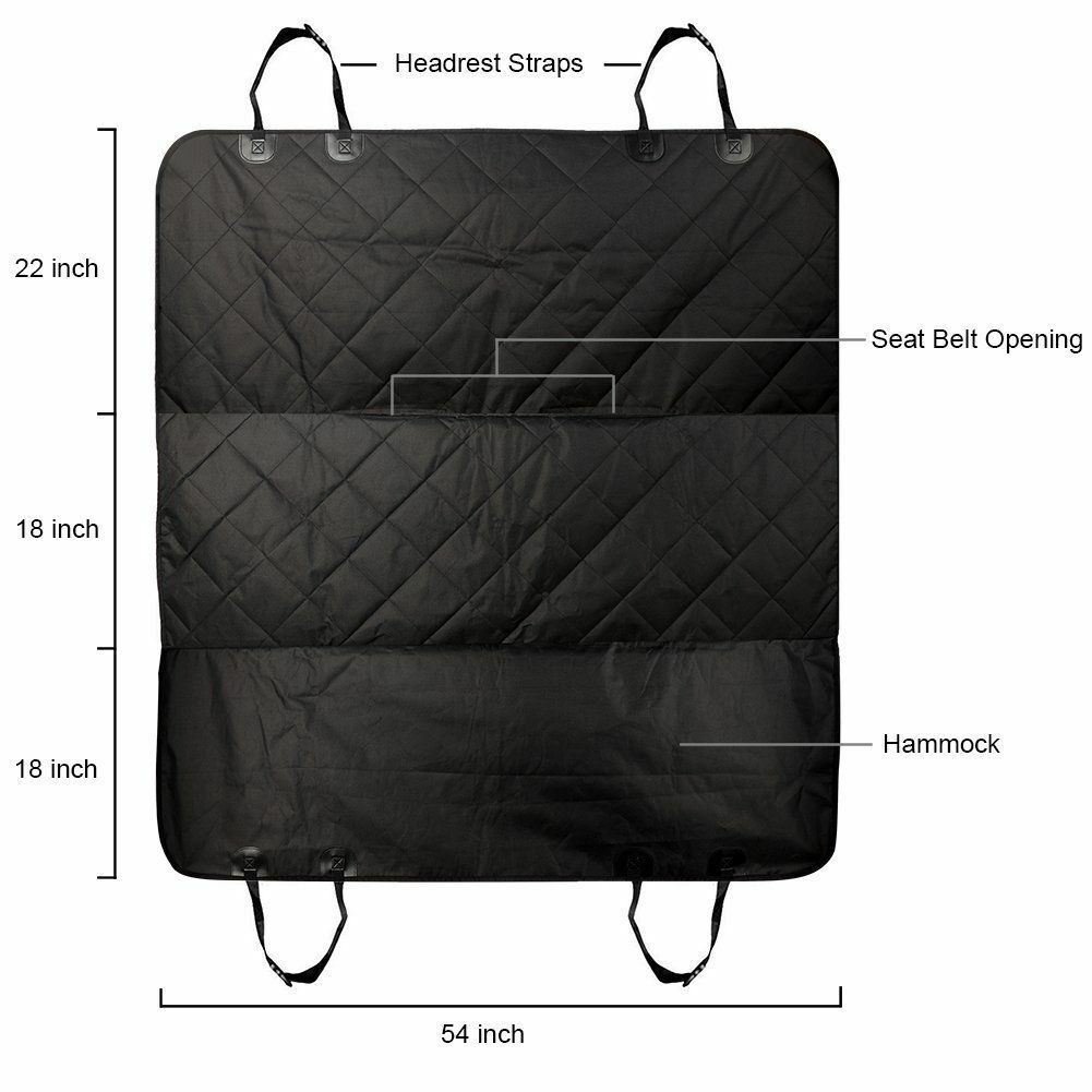 This rugged pet seat cover is made from 4 layers of fabric: thick water-resistant Oxford fabric, cotton layer, 100% waterproof polyester, and PVC non-slip soft rubber. Four layers of protection to keep your car safe from pet claws, stains, and liquids.